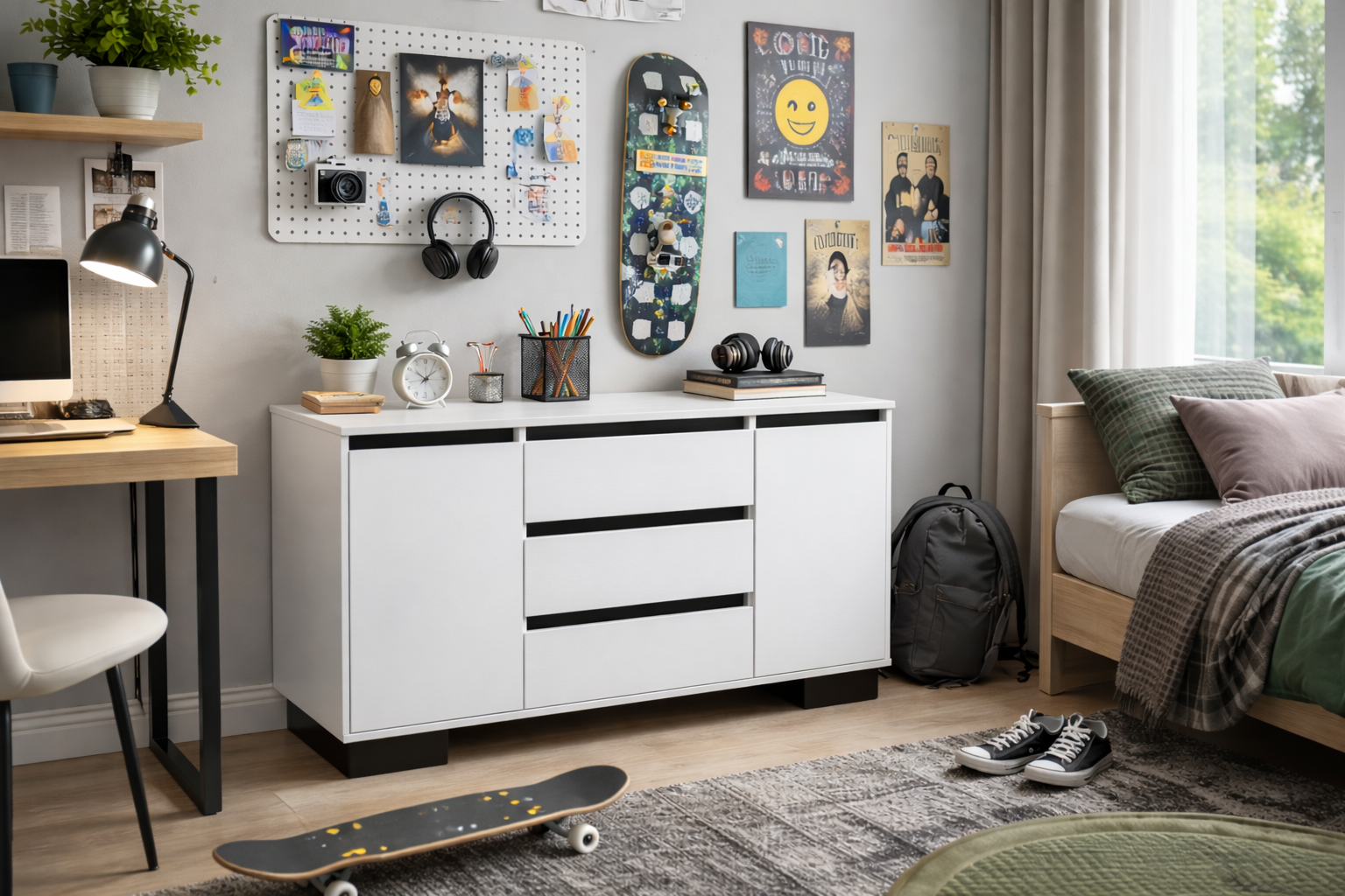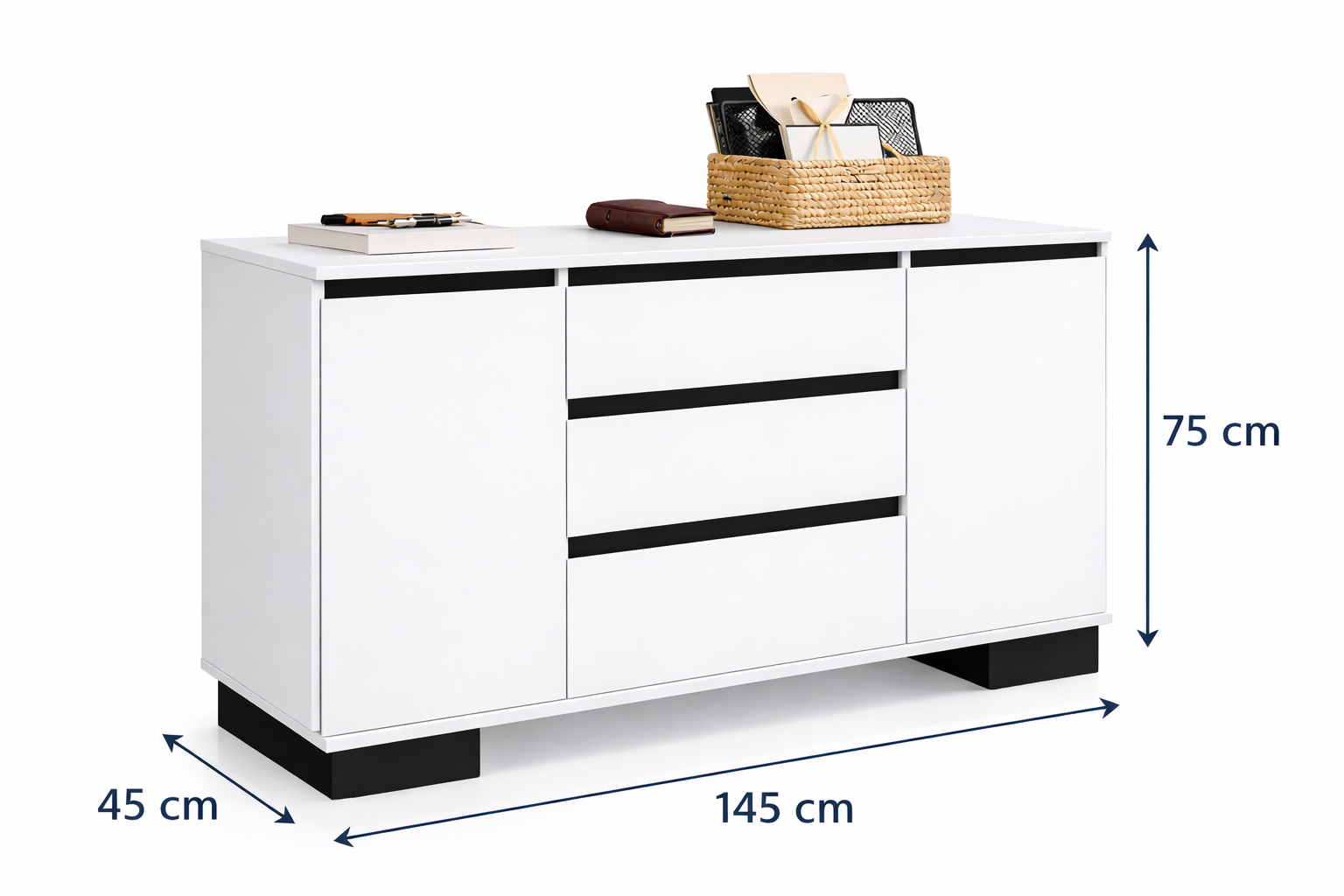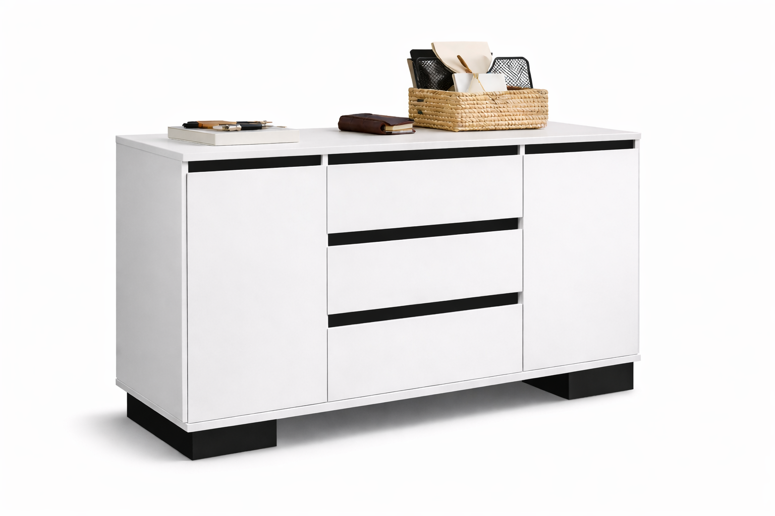 Komoda ALFA 2D3S – Biała z czarnymi elementami
