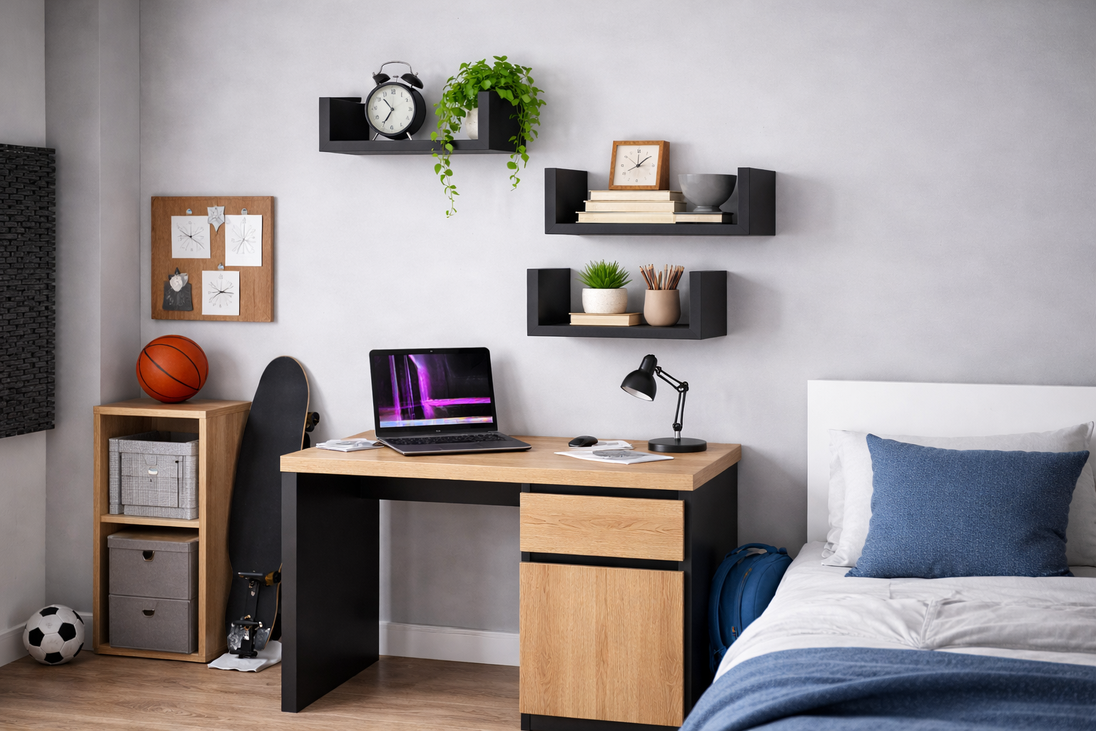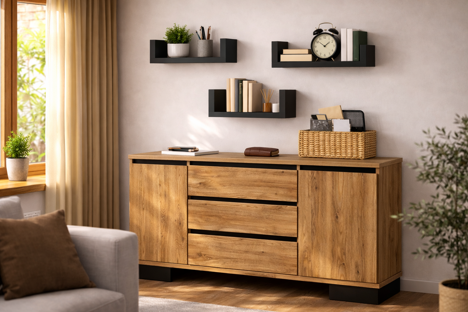 Szukasz prostego sposobu na uporządkowanie przestrzeni i jednocześnie stylowy akcent we wnętrzu? Nasze półki ścienne w głębokiej czerni to idealne rozwiązanie do nowoczesnych i loftowych aranżacji. Minimalistyczna forma, wyrazisty kolor i przemyślana konstrukcja sprawiają, że stanowią mocny, elegancki akcent w każdym pomieszczeniu – od salonu, przez sypialnię, aż po biuro czy pokój młodzieżowy.