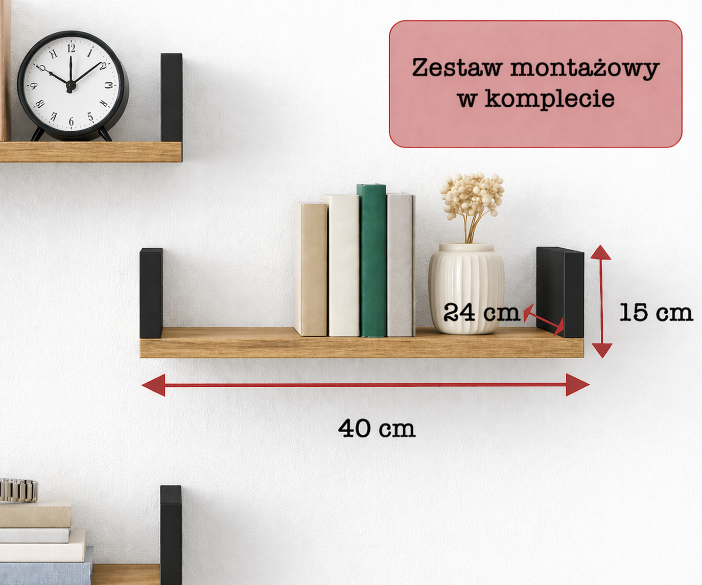 Każda półka ma 40 cm szerokości, 24 cm głębokości i 15 cm wysokości, co oznacza, że bez problemu ustawisz na nich książki bez ryzyka wystawania poza krawędź. Kompaktowy rozmiar sprawia, że świetnie sprawdzą się również w mniejszych przestrzeniach, gdzie liczy się każdy centymetr.