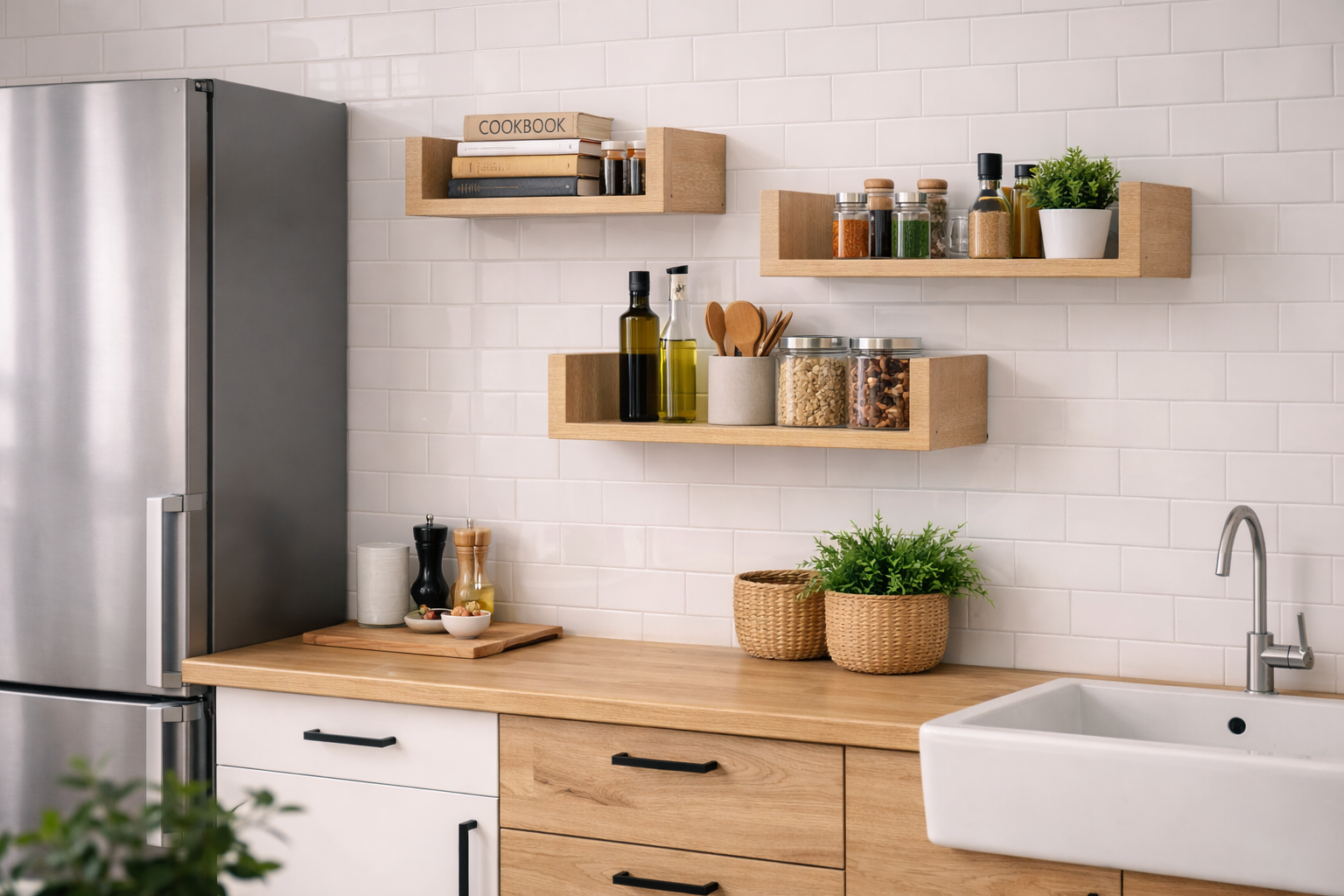 Postaw na półki, które łączą naturalny wygląd z funkcjonalnością i większą przestrzenią użytkową.