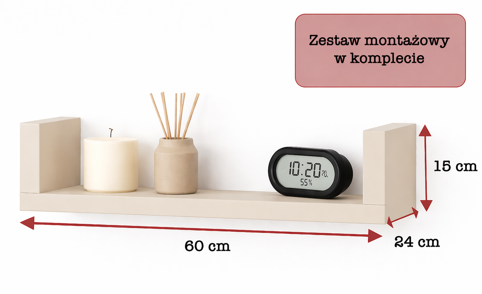 Szukasz rozwiązania, które pozwoli uporządkować przestrzeń, a jednocześnie doda wnętrzu lekkości i elegancji? Półki ścienne w kolorze kaszmiru to idealne połączenie funkcjonalności i subtelnego designu. Delikatny, ciepły odcień świetnie komponuje się zarówno z jasnymi, jak i bardziej kontrastowymi aranżacjami.