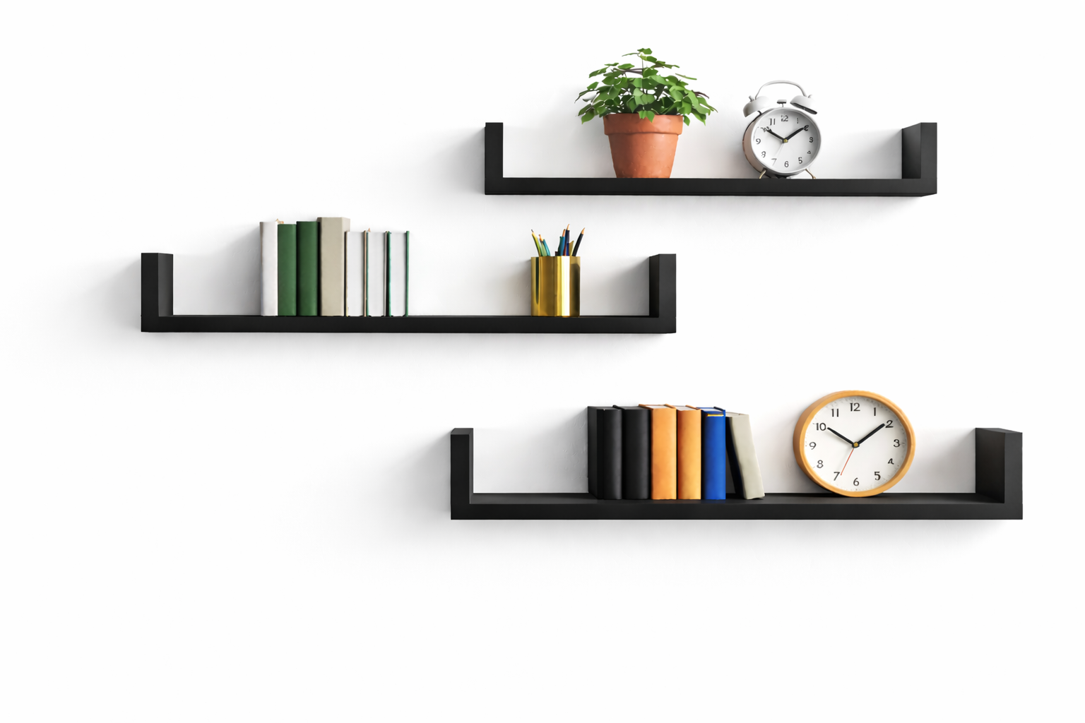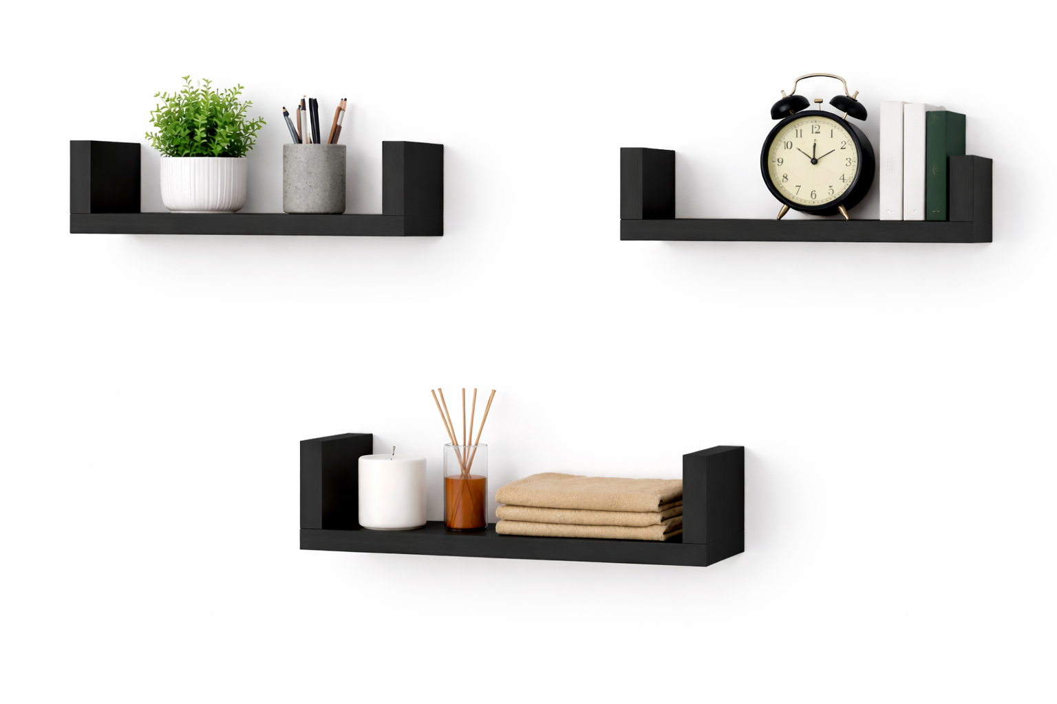 Półka Ścienna Wisząca 40 cm P1-40 Czarna Zestaw 3 szt do Salonu, Sypialni