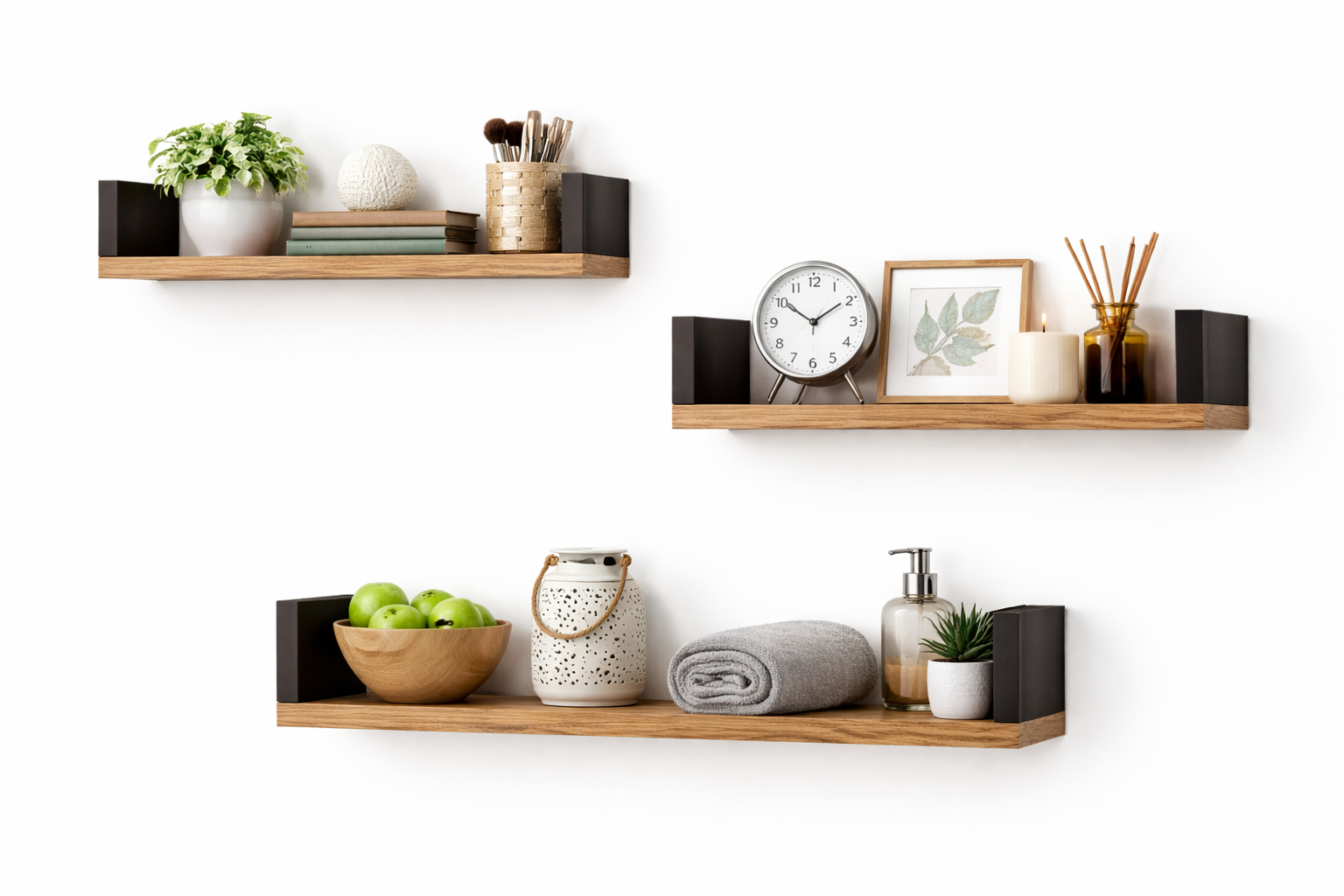 Półka Ścienna Wisząca 60 cm P1-60 Dąb Wotan/Czarny Zestaw 3 szt do Salonu, Sypialni