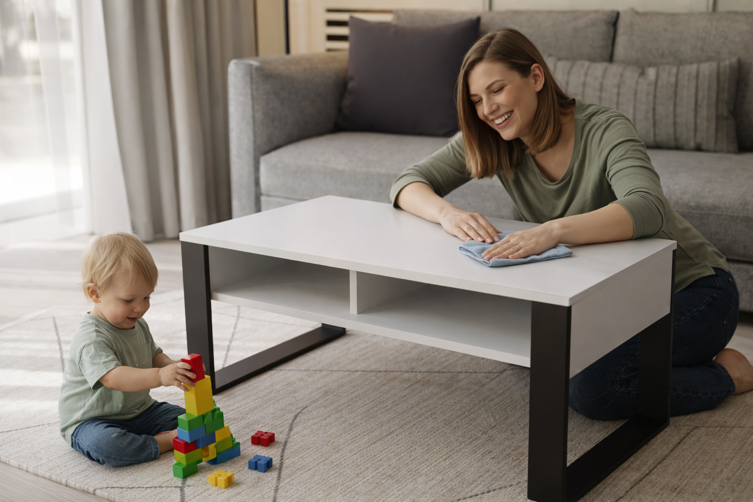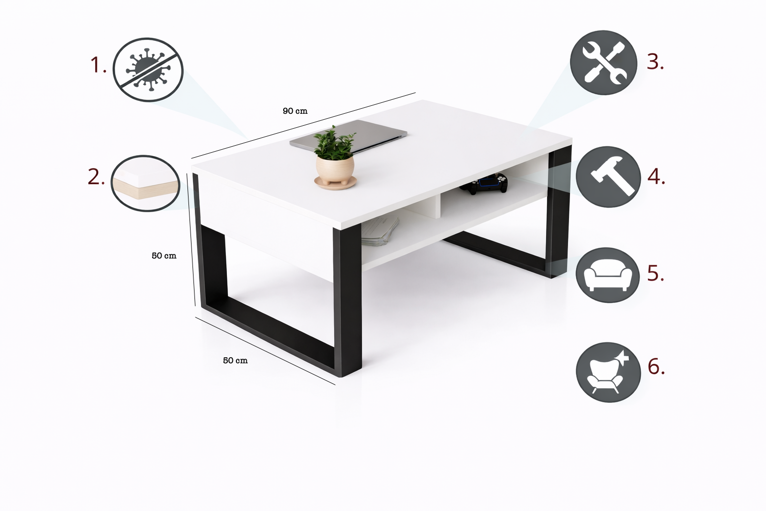 Dzięki dodatkowej dolnej półce jest niezwykle użytecznym elementem każdego pokoju. Niezwykle nowoczesna i przemyślana konstrukcja zapewnia stolikowi stabilność i niepowtarzalny wygląd.