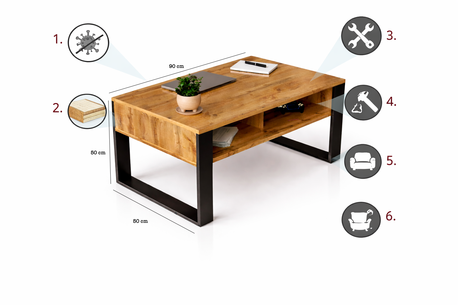 Dzięki dodatkowej dolnej półce jest niezwykle użytecznym elementem każdego pokoju. Niezwykle nowoczesna i przemyślana konstrukcja zapewnia stolikowi stabilność i niepowtarzalny wygląd.